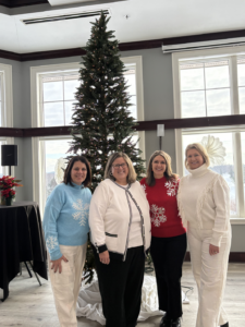 The AAUW Hastings launched the holiday season by hosting their annual brunch. “Let it Snow” was the theme this year. Decorations of snowflakes, ice blue napkins and festive table centerpieces shined throughout the room at the Hastings Golf Club on Saturday, December 6th. Mary Ellen Fox and Brin Peterson serenaded us with festive music, played pass the snowball game and many were lucky to receive a gift to enjoy during the holiday season. Members once again were generous hosting 2 families for Adopt a Family and this year added female hygiene donations to Hastings Family Service. Fun and holiday magic was had by all.